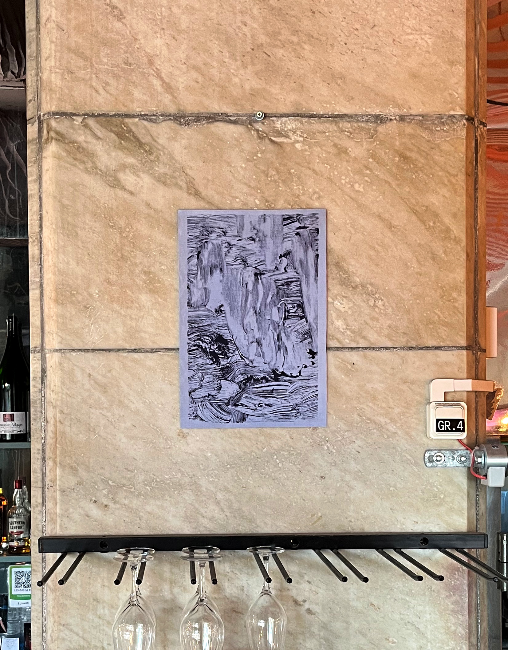 2024. Acrylic on cotton/silk, monoprint on a painted base. 140 x 185cm